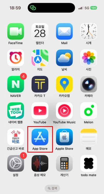 iOS에 기본으로 내장되어 있는 App Store를 실행합니다.